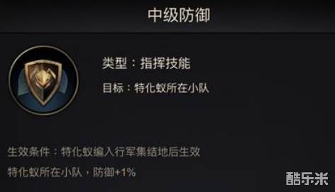 3.中级防御、中级攻击技能效果棘齿猛蚁和黑背弓蚁都相同,可使棘齿猛蚁所在小队所攻击防御各增加1%,满级后棘齿猛蚁小队击防御各增加10%。