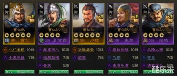 七级地敌方武将带兵达到了5000,七名武将一共35000兵力。为应对如此高的对手,你的阵容必须具备以下条件: