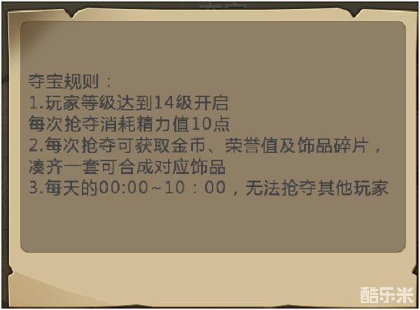在每天的0:00到10:00为免战时间,无法抢夺其他玩家,也同样无法被其他玩家抢夺,在非免战时间内玩家亦可通过消耗“免战牌”进入免战时间