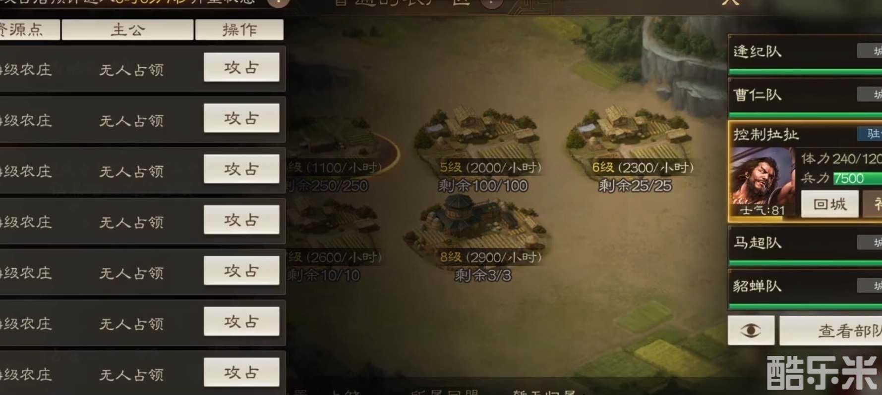 4、四级地中有很多四级资源,在成功攻占后可以获得大量的资源加成,对于玩家后续提升自身的实力有很高的帮助,前期抢占四级地可以获得更多的资源。