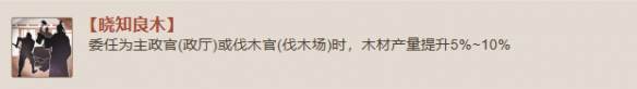 委任为主政官(政厅)或伐木官(伐木场)时,木材产量提升5%~10%。