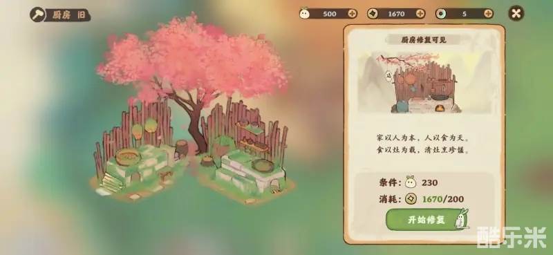 这个玩法呢需要两个前提条件,第一个就是要达到16级才可以解锁的哦,还有就是要清空许愿台周围的树木才可以进行修复。