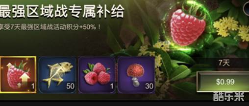 喜欢参加区域战的玩家一定要解锁最强区域战专属补给,这个补给只需一次解锁,就可以享受7天最强区域战积分+50%。再配合高级增益树莓叠加BUFF,最强区域战活动积分最高+150%。每天完成区域奖励全部档位不是梦。除此之外购买后7天内共计可获得生物残骸*350,高级增益树莓*7,剧毒孢子*210。