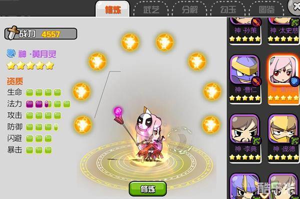 黄月灵的羁绊组合为法师暴力输出队,追究极致的秒杀!同时生存能力也不弱,高闪避和高防御能打打提升对物理向团队时的生存力!