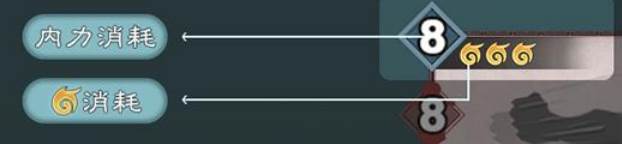 内力消耗——使用每张牌都需要满足内力消耗,其中内功武功是用于恢复内力的,对应的位置显示 的是+X形式,代表内力增加