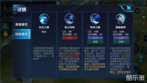 战场技巧:白起在战场中可以利用自己大招来开团,控制敌方后排英雄,并且配合己方英雄将敌方后排输出击杀,并且合理使用二技能控制敌方英雄。也可以使用大招控制住要刺杀己方后排的英雄,保护后排英雄。