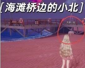 2.流浪小北只在月亮升起时出现,流浪小北在沙滩海边桥头,具体位置如下: