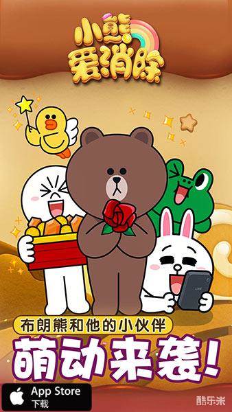 LINE正版授权,《小熊爱消除》游戏内满是呆萌可爱的布朗熊和他的小伙伴们,俏皮的可妮兔、温暖的莎莉,还有更多LINE角色聚集在《小熊爱消除》中,喜欢他们就来游戏中与他们见面吧!
