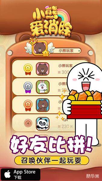 聚集全球消除高手,战绩排行时时更新!好友鼓励护送爱心,好友比拼竞技无限!现在召唤你的小伙伴加入《小熊爱消除》一起玩耍吧,来场畅酣淋漓的全新玩法消除大战!