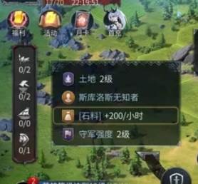 游戏中有四种基础资源,分别是粮食,木材,石头和铁,当玩家最开始的时候,必须要保证粮食和石料的充足,因为玩家征兵的时候需要消耗大量的粮食,升级建筑需要大量的石头。