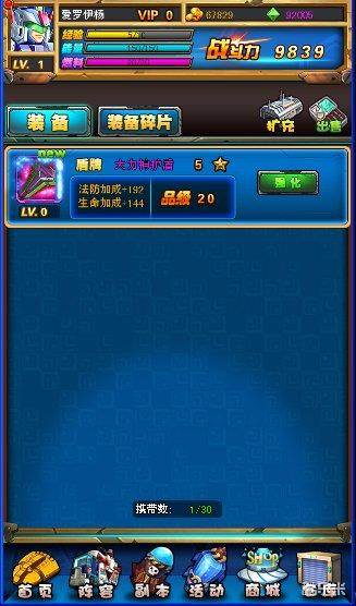 里面有装备和装备碎片2个选项,其中装备是你拥有的完整装备,你可以对你的装备进行强化和洗练。初始拥有的装备携带数是30个,你可以在右上角的扩充选项进行扩充。你不需要的装备可以出售掉。