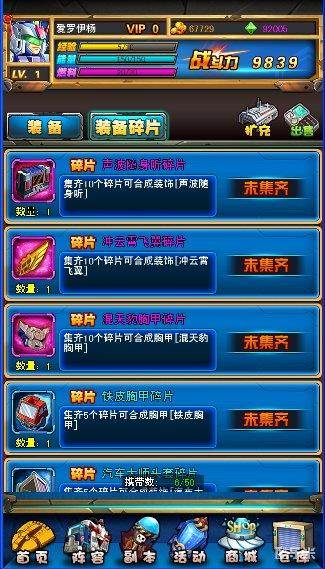 装备碎片中显示的是你拥有的各种装备碎片,集齐需要的装备碎片数量就可以合成完整的装备。