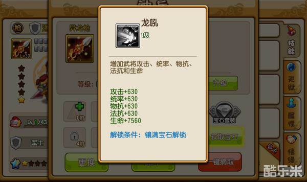 不同的橙色神兵当佩戴满宝石之后,将可以获得强悍的宝石套装效果。