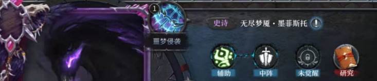 墨菲托斯是属于深渊阵营的辅助英雄,自身的射程仅仅为两点,所以需要放在前面才可以,最为强大的地方在于自带技能的效果,噩梦侵袭可以将敌方全体英雄的射程降低一点,并且基础的攻击力属性和智力属性都会降低。这个技能是一个非常强悍的减益类技能,虽然触发的几率并不高,但是可以通过其他的途径提升。