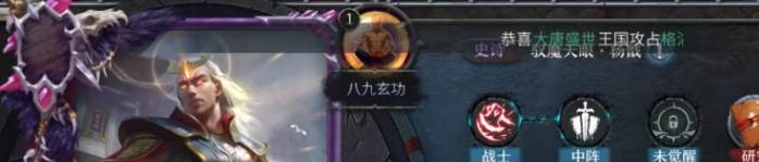 杨戬是属于帝国阵营的战士类英雄,射程是两点,所以一般只能是放在中前排,杨戬自带的技能是八九玄功。这个技能是一个史诗级的被动技能,在每个回合开始的时候,杨戬就可以将自身所有的不良状态都净化掉,同时获得一个洞察效果。还有一个作用是在打出普攻之后,有几率使得伤害目标眩晕,还有几率使得目标降低全部属性。