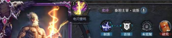 宙斯是属于旧日阵营的首领英雄,作为一名刺客有着三点的射程,所以可以防止在中间或是前排的位置,后排就不行了,攻击范围不够了。宙斯的自带技能是电闪雷鸣,这是一个被动的控制技能,在战斗中宙斯提升自身的伤害,并且每次释放主动技能之后,有几率使得敌方的一名英雄被封印,被封印之后的目标无法使用技能,持续一个回合。