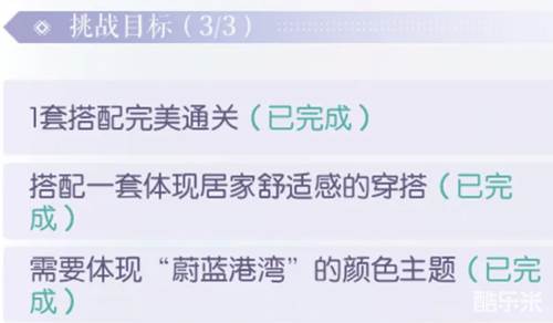 1、“蔚蓝港湾”颜色主题需要选择搭配蓝色(淡蓝色/蓝绿色)的衣服、饰品等,选衣服合适的话前面会打钩,可以以此来判断。