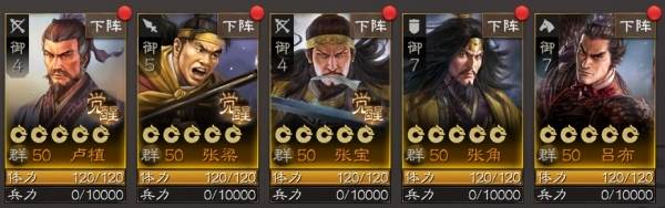 推荐阵容一:卢植+张角+吕布+张梁+张宝
