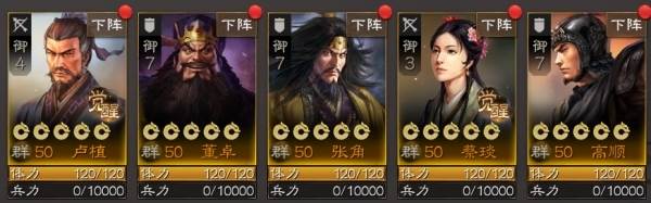 推荐阵容三:卢植+董卓+张角+高顺+蔡琰