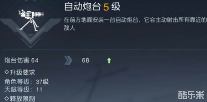 在使用之前首先要先了解该装备主要特点,玩家可以在装置类技能中直接找到,但是初期并不能直接使用,需要先提升天赋等级,当达到5级时就能解锁。该技能效果非常简单,只要选中地方之后,直接使用就能放置起机枪炮塔。和名字一样,攻击可以自动进行无需手动操作,当周围出现敌人时会自动锁定并且攻击,旋转起来没有任何死角,周围360度范围都能攻击到。缺点是虽然属于远距离攻击手段,但是射程并不算太远,所以比较讲究释放位置。