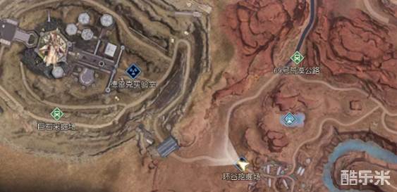 环谷挖掘场的路标在坐标(3442,-680),通过路标传送即可到达,如果没有路标传送需要开车前往该地区进行路标解锁。科勒矿山地区大部分为荒漠沙地,宝箱通常是放在有建筑物的地方,所以只要把该区域内有建筑的地方找寻到即可完成。小编在这里找到了几个宝箱,接下来给大家描述一下他们的分部大概在哪里。首先工具箱是在路标的正上方,从旁边的石堆可以跳跃上去,坐标位置大概为(3450,-687),这里差不多也是门口最高的石头处。完成工具箱的领取后接下来我们去找军械箱,在坐标(3548,-622)的位置的桌子上有一个箱子,这个是由货车车厢改造成的房间,要注意门口可能会有感染者,进入之前需要先清理完一波。