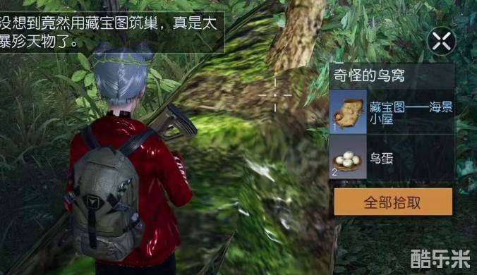 首先需要找到海景小屋的藏宝图,与以往藏宝图可能藏匿在房间或者庭院中不同,这次的藏宝图则是藏匿在野外森林中。地点坐标为4447,-4342,区域地址为赛恩斯丘陵渡鸦避难所以东的方向,在石堆的倒塌大树下,有一个奇怪的鸟窝,注意是在倒塌废墟树下,如果在这块区域中,需要注意找寻一下是否有亮点可以进行搜索。