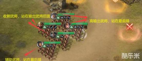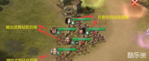 抗伤武将站在前排,牵制敌军进攻的道路,保护我方正面输出武将和辅助武将