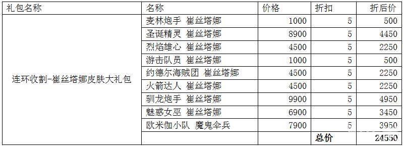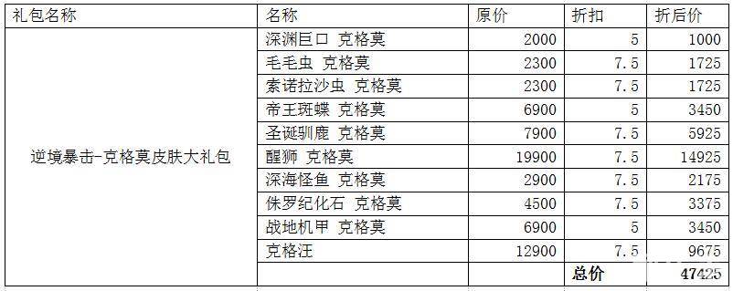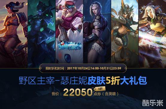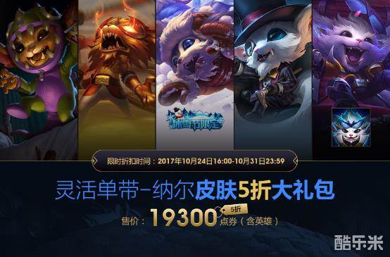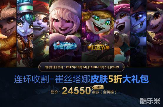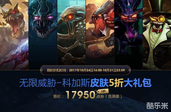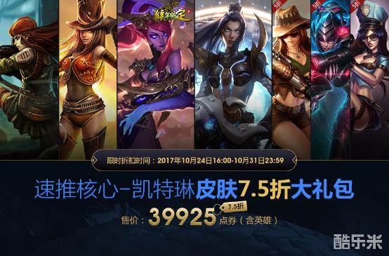 为了祝贺RNG、WE两支LPL队伍成功晋级半决赛,以下礼包将于:10月24日 16:00-10月31日 23:59上架,礼包中的克格莫皮肤和凯特琳皮肤大礼包为7.5折礼包,但由于其中部分皮肤在近期进行了5折销售,因此这部分皮肤在礼包仍然维持5折价格销售。