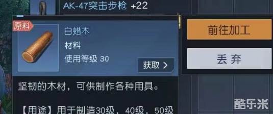 以上就是此次小编带给大家关于白蜡木采集的分享,白蜡木属于高级原材料,砍伐树木时会与木材和蜡木枝同时掉落,玩家如果只需要加工白蜡木,只需要单独放入原料加工台即可,加工后的材料可用于制造改装等,视需要而定。