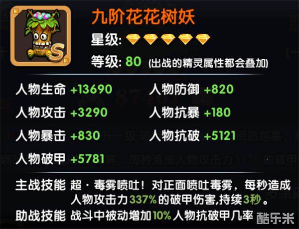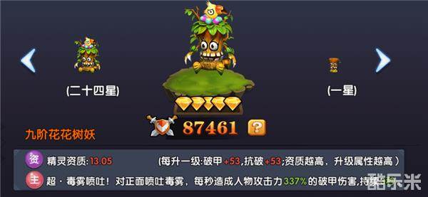 花花树妖的主属性是破甲和抗破。
