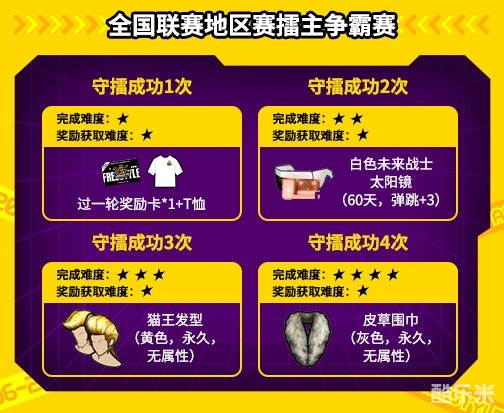 参与SFSA地区赛的玩家过一轮将可以获得奖励卡以及限量版T恤,玩家参与基友团还能额外获得一次稀有抽奖机会。赛事期间每天中午还有稀有大抽奖,玩家还能参加第二天3V3擂台赛成为擂主获得更多奖励。