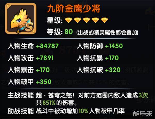 金鹰少将的主属性是攻击和生命。