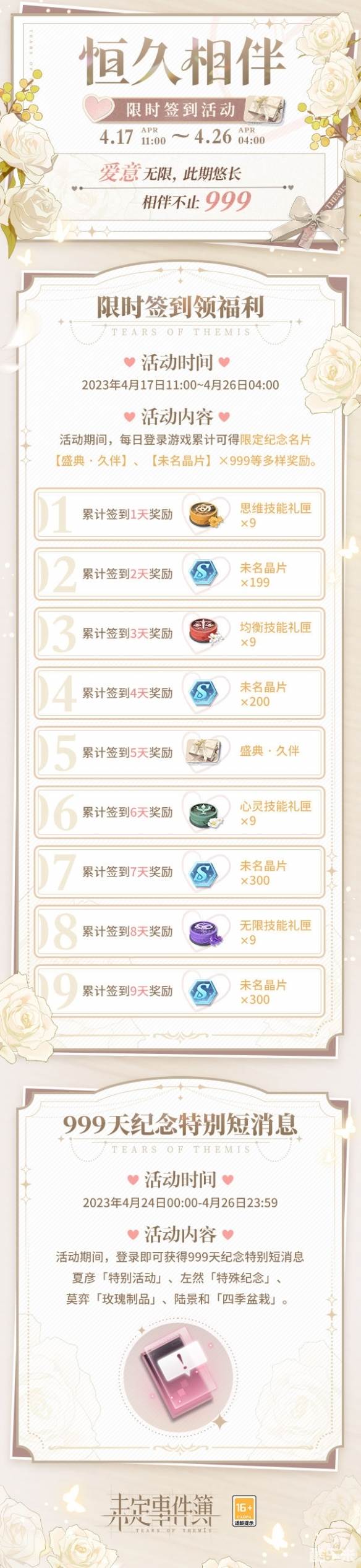 4月17日,开服999天限时签到活动「恒久相伴」即将开启!