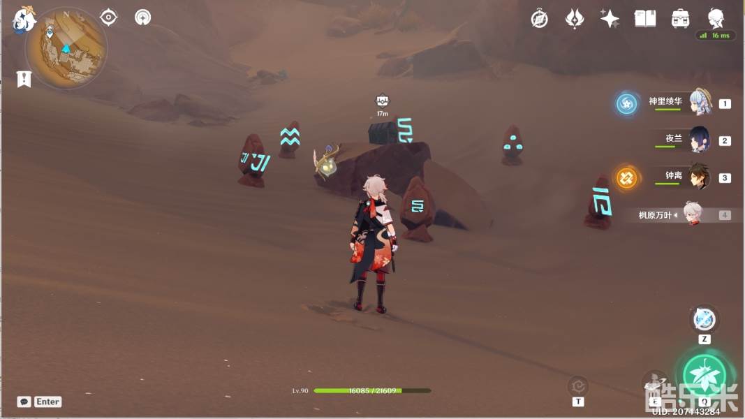 2、传送到神的棋盘左上角的锚点,往地图东南方向飞行,来到沙坑底部进行解密。