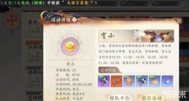 组队参与的限时活动,可获得绝学、宝石等丰厚奖励。