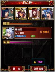 当我们选择副本点击援助后会有一个提示框供选择寻问你是否需要获取祝福,获取需要消耗1000金币。