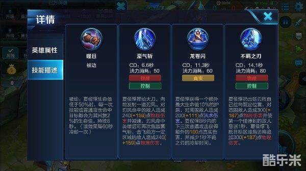 加点解析:一技能是夏侯惇的主力输出技能,其技能冷却时间更短、实战效果更优秀、技能成长值也更高,所以毫无疑问主点一技能!