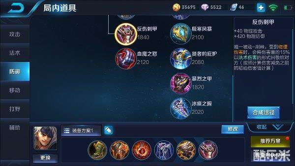 六神装推荐:红莲斗篷+影忍之足+不死鸟之眼+魔女斗篷+不祥征兆+反伤刺甲