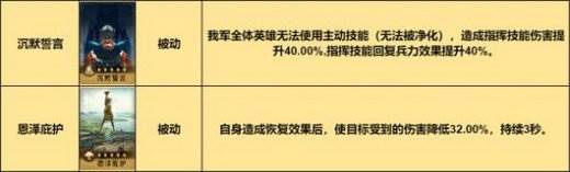 沉默誓言是指挥剑的绝对核心技能,一旦获得并培养成型后,在多种战斗场景都有不俗的表现,野战期间根据技能CD迂回战斗,更能将其特性发挥到极致。