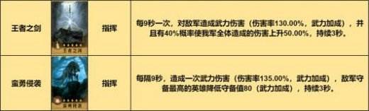 值得注意的是,指挥剑是一个非常吃技能完整度的阵容,上限和下限的差距较大,初期技能尚未完备时整体强度较弱,集结战斗尚可,野战需尽量规避,否则易出现高战损比。