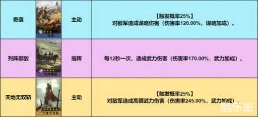 紫色:指挥技列阵御敌为过渡首选,其他如反击、巨石冲击等输出技能为次选。