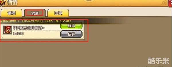 猜拳最终胜利后,武将会跑到【招募】里,需要等待一定时间后才可进行招募,可消耗道具解酒药缩短等待时间。