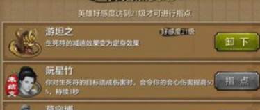 适合生死符的指点英雄有很多比如游坦之,该技能初始效果是短暂减速,当英雄指导之后,之前的减速变成为定身,在和敌人对战时,命中目标敌人,不仅仅可导致移动速度减慢,同时也有定身作用是很独特的。