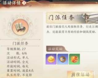 其中比较常见的就是一些日常任务了,它们会每天进行系统的刷新,玩家从中获取到一些指定的奖励,但此处的任务类型这么多,有哪些又是必做的呢,首个推荐的就是门派任务了,这个单人就可以完成的。