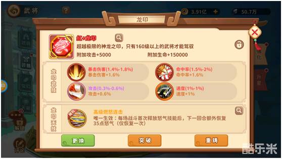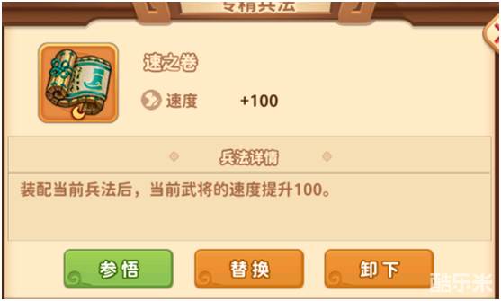 在后期,我们可以开通兵法界面,可以装备不同的兵法书对武将进行强化,推荐使用速之卷和命中卷,如果有富余可以开更多的插槽,建议用提高输出的卷轴即可