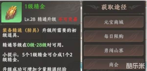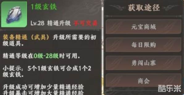 另外不同装备所消耗的精通升级材料也是不一样的,其中包括武器,手套在内的攻击型装备需要消耗1级的玄铁,所要的数量会跟随精通等级的提升而提升,如果运气不好还有可能失败,从而导致这个材料白白浪费。而包括项链,鞋子和衣服在内的防具型装备则需要1级精金,升级和消耗规则与玄铁相仿,同样也存在暴击和圆满的可能。