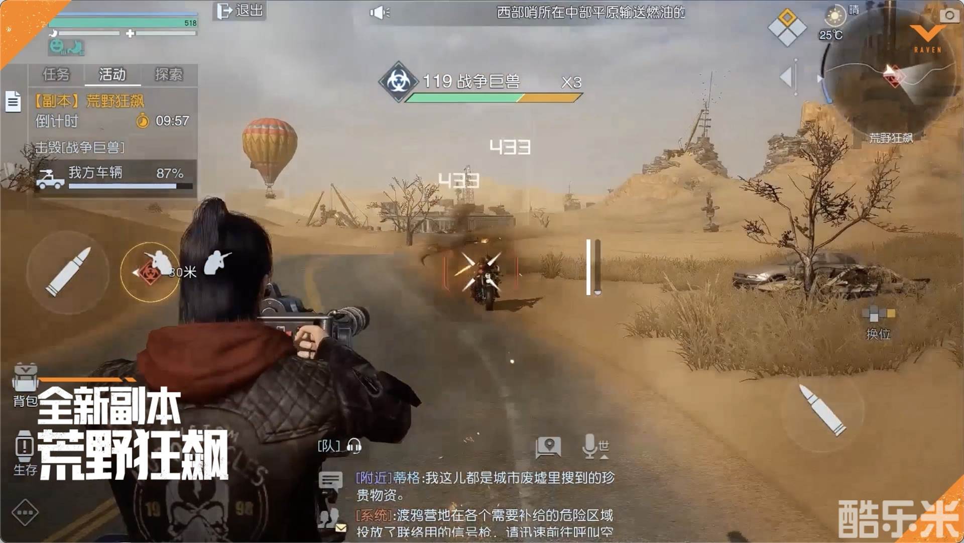 将于每周一晚与“怒海争锋”轮换开放,幸存者们可以驾驶改装车辆,与夜枭在大漠黄沙之上狂飙追逐,驰骋追击。“迷雾战境”将替换每周二的“营地巡查”活动,在这片被迷雾笼罩的封锁区中,遗留着救援部队遗留的珍贵战略物资。全新追逐玩法“狂欢竞速”也将上线,面临未知威胁,渡鸦避难所组织各位幸存者,展开灾难逃生演习。演习将提供载具试驾,幸存者们可在各类载具中自由选择。