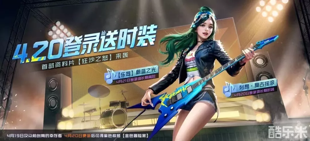 随着“狂沙之怒”资料片的更新,永久紫色时装“复古摇滚”、限定乐器“蔚蓝之光”、紫色家具