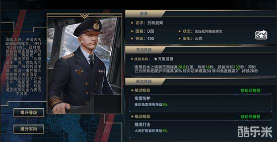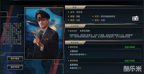 另一位传奇指挥官是玩家熟悉的潜艇“狼群战术”创始人,卡尔邓尼茨。在游戏中,该位指挥官将继续发挥他在潜艇方面的天赋。卡尔邓尼茨的技能是可以大幅提升潜艇在水下的时间,并且提升航速和鱼雷速度,成为战列舰以及航母的噩梦。