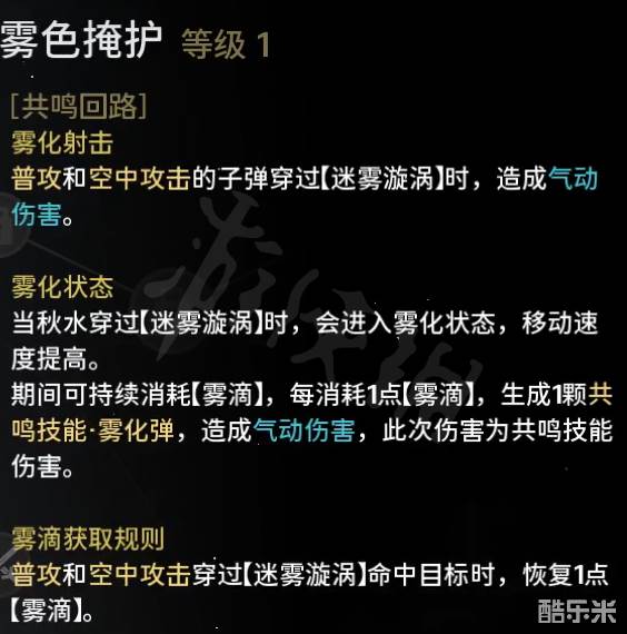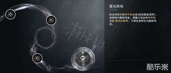 闪避反击:成功闪避后一定时间内使用普攻,将会攻击目标,并向前方扩散出(迷雾漩涡]。